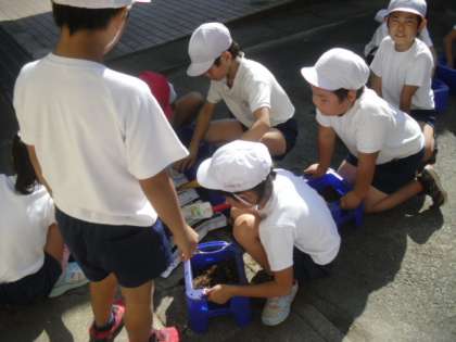今日は,生活科の学習でキャベツの種をまきました。ミニトマトの学習を終え,新しい土を入れて,小さな小さな種をまきました。少し気を抜くとすぐに失くしてしまいそうでした。こんな小さな種が大きなキャベツになるのかな。明日から毎日水やりを頑張ります!!