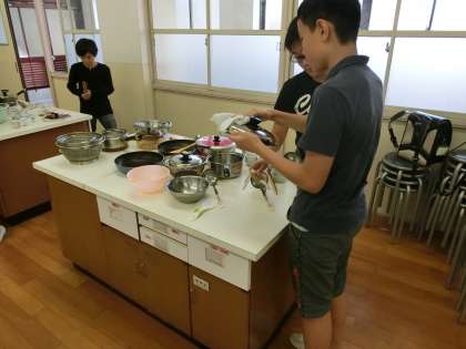 明日の出前板さん教室に備えて今日は,食器や調理器具の洗浄しました。