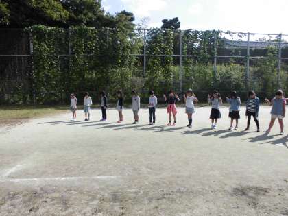 みんなで手をつないだかげおくり、すきなポーズのかげおくり、などたくさんの影を空におくりました。