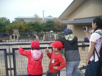 秋の遠足で、動物園に行きました。1,2年生に「たけのこ」の1、4,5年の6名とが一緒に行きました。3年生は、社会見学に行ったので、一緒ではありませんでした。