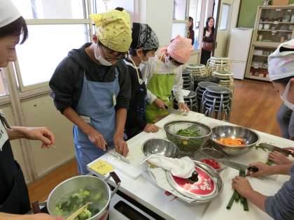 包丁の扱いに慣れている子もいれば包丁を使うのが調理実習ぶりだという子もいましたが,みんなテキパキと作業を進めることができていました。