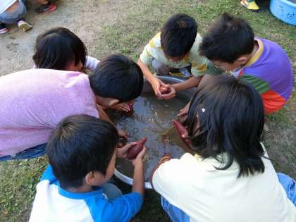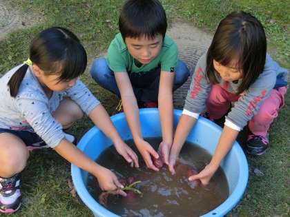 でも,サツマイモパーティーのために,一生懸命洗いました。