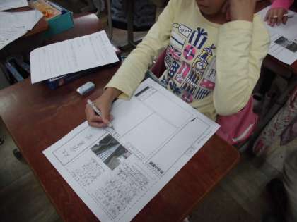 先週の金曜日に社会見学に行ったことを、新聞にまとめています。写真や見学メモを見ながら振り返りをして、書き始めています。