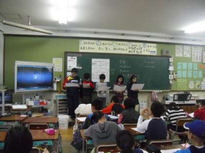 今日は1組で「まっかな秋」の歌をグループで工夫して歌いました。考えた工夫がしっつかり表現できているグループがあり,聞いている子どもたちは感激していました。