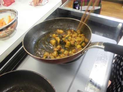調味料をちゃんとはかり,持ってきた食材を全て使うのではなく,食べられる量だけを使う。「丁寧」で「繊細」な感じでした。