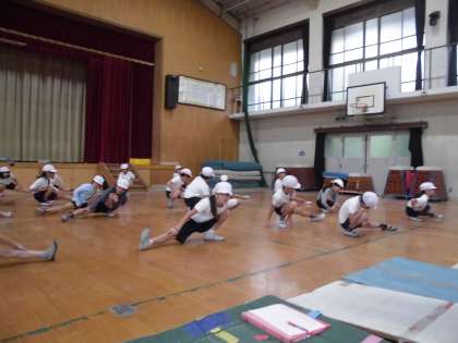 今日は体育でとびばこのテストをしました。練習してきた「台上前転」「縦開脚とび」「横開脚とび」をしました。