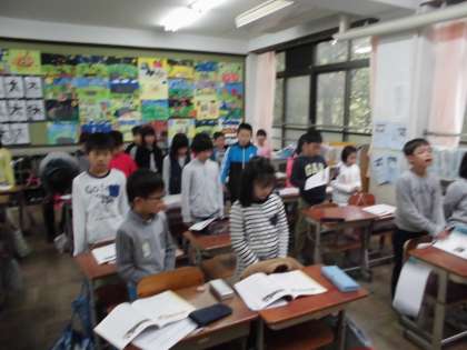 音楽で歌の練習を頑張っています。今日はハングル文字の歌「山うさぎ」と京都の歌「いちもんめの一助さん」を練習しました。