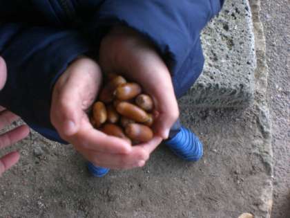 1年生と一緒にたけのこ学級の1、3年生が、秋見つけに北堀公園に行きました。今回も、伏見桃山緑の会の皆さんにお世話になりました。たくさんのドングリを拾い、そのどんぐりでヤジロベエを作ってもらいました。大きなどんぐりではありませんでしたが、かわいいヤジロベエを作ることができました。両手いっぱいに拾ったドングリから、ヤジロベエにぴったりの選りすぐったドングリで作ってもらいました。だから、教室に持って帰ってきても、大切にしていました。マジックインキで、カラフルな色付けをして、楽しんでいる児童もいました。そして、上着のポケットには、たくさんのドングリ。「お母さんに見せるの。」と、嬉しそうです。でも、先日から、たくさんのドングリを持ち帰っているので、お家では大変かもしれませんね。