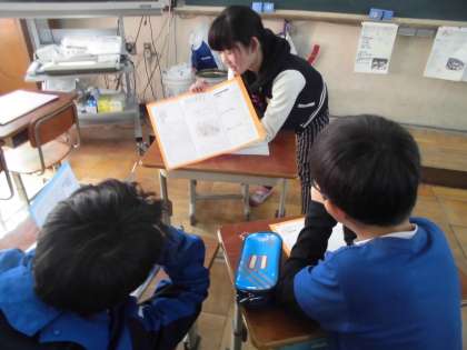 国語で,「大造じいさんとガン」の学習をしました。この物語を読んで,自分の感じた魅力や印象に残った表現についてその理由を中心にまとめました。その後,その魅力を発表し合い,自分の選んだ表現と比べて感想を交流しました。見方によってあらたな発見があることを知れるおもしろい学習になりました。