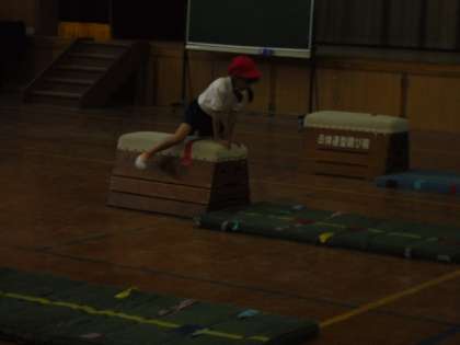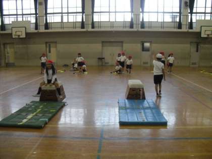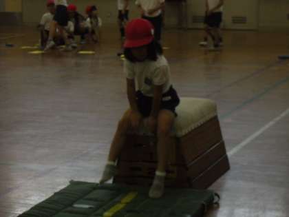 二時間目の「とびばこあそび」でした。前回学習したことから始め,最後の3段の「またぎこし」では,飛び越えられる人は飛び越えてしまってもよいということにしたので,何人かは飛び越えていました。次回は,踏切板を使って,開脚とびに挑戦したいと思います。