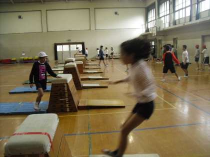 跳べる技が増えてきました。ねらい2の活動では,横のかかえこみ,台上前転,あおむけとびにも挑戦する姿が多く見られます。さらにネックスプリング(これにはほとんど挑戦していますが)・ヘッドスプリング・ハンドスプリングなどにも挑戦していけるといいですね。