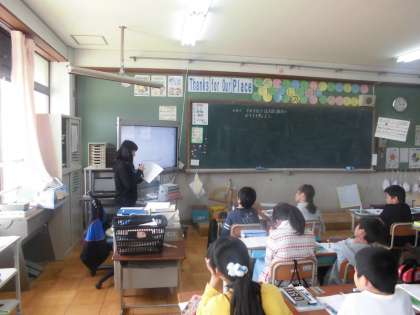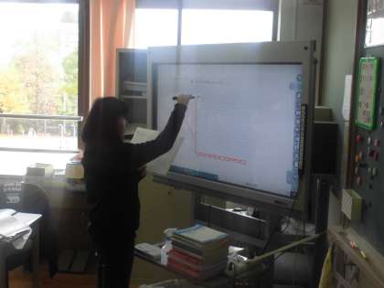 今日は,方眼を使って拡大図や縮図をかく方法を考えました。電子黒板を使って,どのようにマス目を数えてかいたのかを分かりやすく交流することができました。