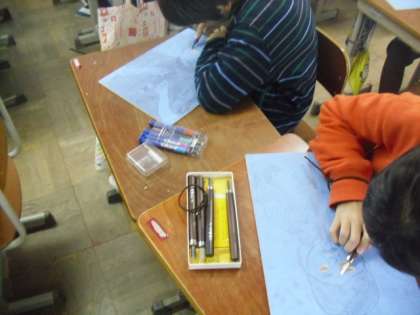 今日からいよいよ「彫り」に入りました。今回は「面彫り」に挑戦します。細かい部分も,丁寧に集中して彫りすすめています。