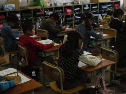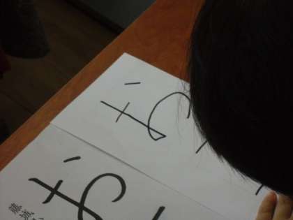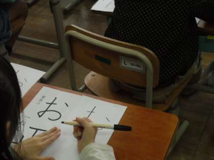 今日は,2回目のフェルトペンでの書写でした。前回の学習の振り返りから始め,より集中して丁寧に書けるように,座り方も変えました。姿勢も正して,集中して書くことができました。前回よりも上手に書けていた人がたくさんいました。