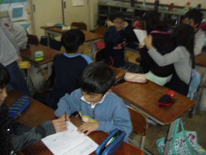 12月8日(火)に行う「かめの子タイム」で発表する「スチューデントシティで学んだこと」の練習を始めました。働くことの大変さや仕事を通して学んだことを,劇やプレゼンのして発表します。今日は各担当グループに分かれて計画を立てました。明日から練習開始です。