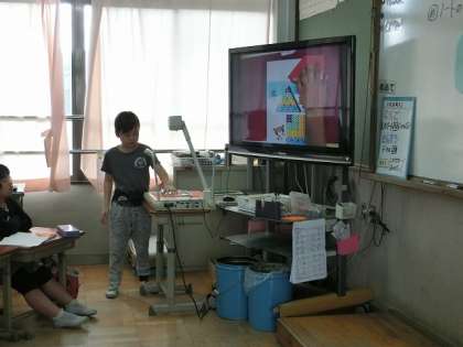 算数では,1組は三角形と四角形,2組ではかけざんの学習を進めています。