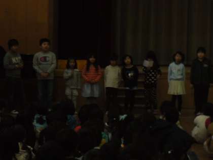 人権集会では,各クラスの人権目標について振り返り,できていることやこれから頑張っていきたいことなどの発表をしました。1組も2組も代表の二人が,しっかり発表することができました。