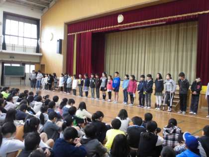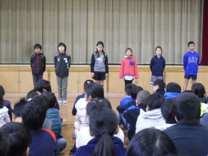 最後に,4年生の代表委員が終わりの言葉を発表しました。全校に伝わりやすい大きな声で堂々と発表できていました。次の行事でも,全校をリードしていってほしいです。
