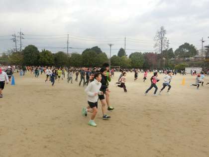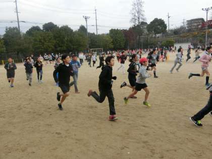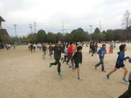 いつもの朝マラソンと違い全校児童みんなで走ることに新鮮さを感じたようで