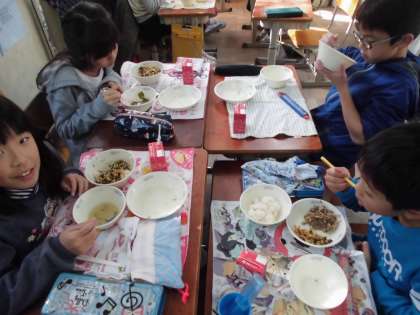 今日の給食の献立は「ビビンバ」と「トックが入ったわかめスープ」でした。道徳で外国人教育として韓国についての学習をしたので、みんな「あ!ビビンバは韓国の料理やんなあ!」「前授業でやったなあ。」と思い出しながらおいしそうに食べていました。