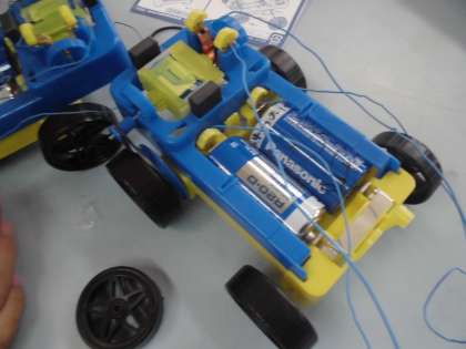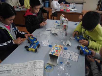 学習のまとめとして,電磁石の性質を使い,車作りをしました。うまく動いたり,動かなかったり,四苦八苦しながら車作りに取り組んでいました。おもちゃ作りとなるといつも以上に目をキラキラさせながら夢中で取り組んでいました。