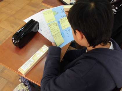 三年生からクラブリーフレットを読んでの感想が返ってきました。「クラブ見学の時に見に行きたいです。」「活動の様子がわかりやすかったです。」「私も来年○○クラブに入りたいです。」という感想がとても多かったです。写真と文章を使って,わかりやすく伝えることができました。三年生からもらった感想をみんな真剣に読んでいました。