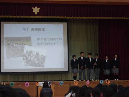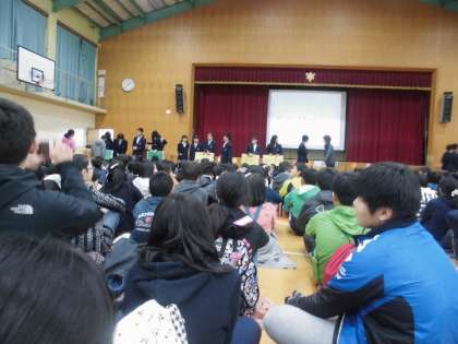 全体会では,中学校生徒会のメンバーが分かりやすく,楽しく説明をしてくれました。