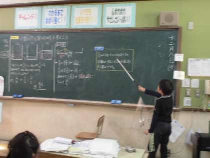 マラソン大会を終えて、3時間目は算数の勉強をしました。今日は「分数の足し算」の勉強です。図や数直線、ことば等で足し算の仕方を考えました。