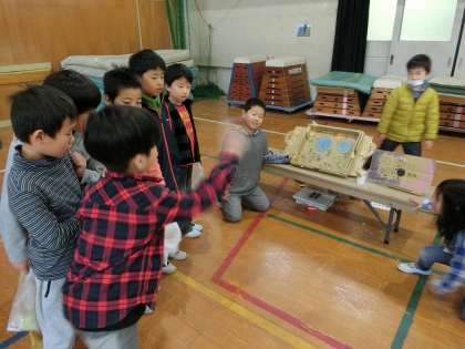 今日は,1年生とたけのこ学級によるなかよしまつりがあり,2年生が招待されました。