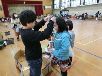9日には、1,2年生のなかよし祭りがありました。今まで2年生に、学校探検や校区めぐりでお世話になったお礼に、1年生が屋台を作って2年生を招待するおまつりです。たけのこ学級にも、1年生が四名いるので、何かお店をしようということになりました。そこで、算数で勉強している釣り堀屋さんをすることになりました。釣るだけでは面白くないので、時間制限を設けてその制限時間内に10匹以上釣れば金メダル、届かなかったら銀メダルを渡すことにしました。まずは、メダルつくりを1年生を中心にしました。2年生は、70名ほどいるので70個作るのは大変でした。それでも、☆の付いたメダルを作り、魚釣りをしてくれた2年生にプレゼントできました。後から、2年生からお礼の手紙をもらい、みんなその手紙を嬉しそうに読んでいました。