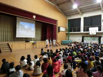 かめのこタイムの発表を行いました。劇あり,クイズあり,小道具ありの楽しい発表になりました。1年生から5年生の子どもたちにも修学旅行が楽しみだという思いを持ってもらえたようでよかったです。さすが6年生という発表でした。