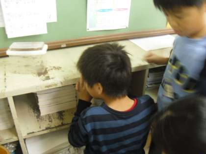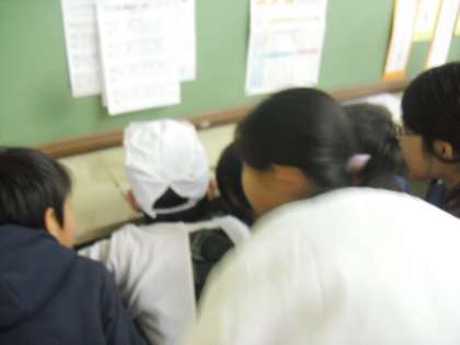 しかも発見されたのが、給食の配膳中。当番じゃない子も当番の子も一気に押し寄せて覗き込んでいました。