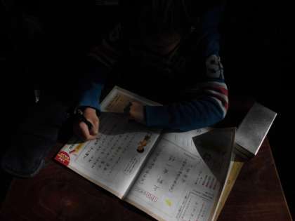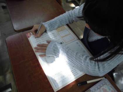 書写で硬筆をしました。教科書ではがきの書き方を学習して、丁寧になぞり書きをしました。また、「まがり」「はね」「はらい」に注意して漢字も丁寧に書きました。