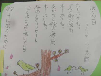 「のはらうた」の学習のあと、自分達も野原の住人になって詩を書くことにしました。