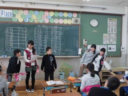 大道具と小道具を作る様子を見て,お遊びになってしまうのではないかと心配していたのですが,しっかりと長い英語のセリフを覚えて,大きな声で言えていました。英語の方が恥ずかしさがなくなるようで,楽しく学ぶことができました。