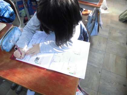 漢字の学習がんばっています。今日は「運」「庫」「羊」「炭」の4つの新しい漢字を勉強しました。
