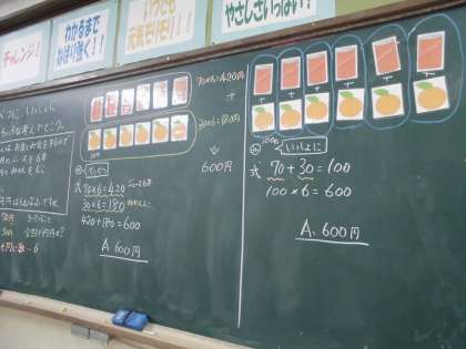 算数で「べつべつに、いっしょに」の勉強をしました。冬休み明けの初めての算数の授業でしたが、みんな集中して取り組んでいました。