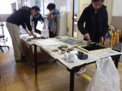 インクの濃さを確認しながら,ばれんで丁寧に刷っていました。