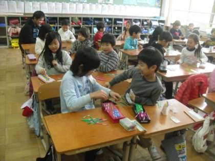 この時間では,「じゃんけんぼうとりゲーム」をし,自分が何本棒を取れたか数える学習をしました。