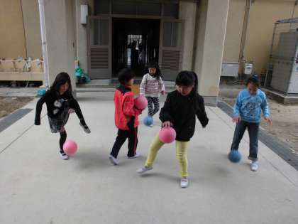休み時間に、自主的に「鞠つき」の練習をしている人がいます。新しい技にチャレンジしたり、今できる技の完成度を高めたりしています。