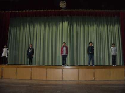 今日は寒さに負けず体育館で劇の練習をしました。本番の通りに流してみましたが,まだまだ課題がありました。声の大きさや,表現の工夫,舞台での立ち位置等・・・・・。明日の練習で,クリアしていきましょう。