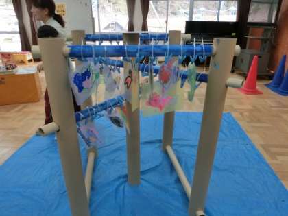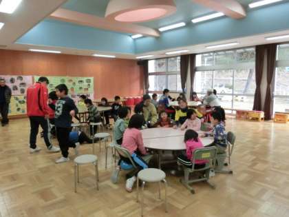 小さな巨匠展が、京都市美術館別館で、2月2日(木)から5日(日)まで行われます。その共同作品を京都教育大学附属特別支援学校で作りました。例年、附属特別支援学校にお世話になって作っています。今年も、藤城小のみんなは、附属特別支援学校に作りに出かけました。今年のテーマは、「ひろがれ!みんなのゆめのせかい!!」です。伏見中支部では、この全体テーマを受けて「おいで おいで ステキな 海の世界へ」となりました。そこで、クリヤーシートに魚の絵を描いて、テトラブロック状の枠組みにつるすことにしました。枠組みは、附属特別支援学校で作ってくださったので、今日は、クリヤーシートに魚の絵を描きに行きました。まず、みんなで顔合わせにバルーンをして交流を深めてから作品つくりをしました。みんなとっても楽しそうに魚を描いていました。作業は30分ほどで済みました。その後、藤城小のみんなは、支援学校の校庭で存分に遊びました。