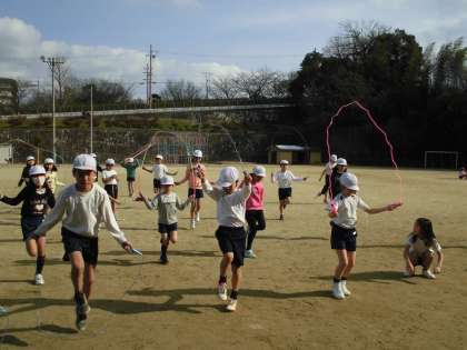 もうすぐ縦割りグループで大縄跳び大会があるので,体育の時間でも大縄跳びの練習をしました。