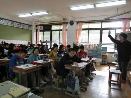 食の学習で「おせち料理について」教えていただきました。お正月に「ごまめ・かずのこ・昆布巻・黒豆」を食べる意味を考えました。割と良く知っている子もいて,先生も感心しておられました。「昔の人は,ダジャレが好き」だったのですね。