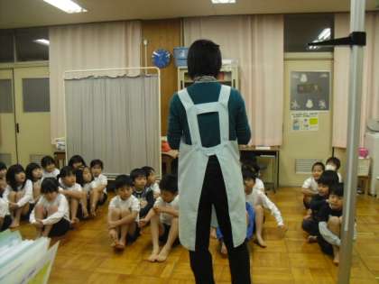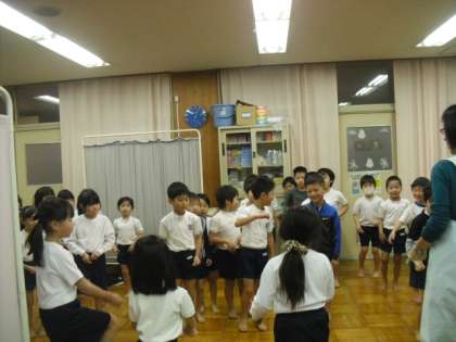 身体計測がありました。測定する前に,山岡先生と一緒にダンスもしました。秋の測定時に比べて,身長が2〜3cm伸びている子ども達もいました。みんな大きくなってきましたね。