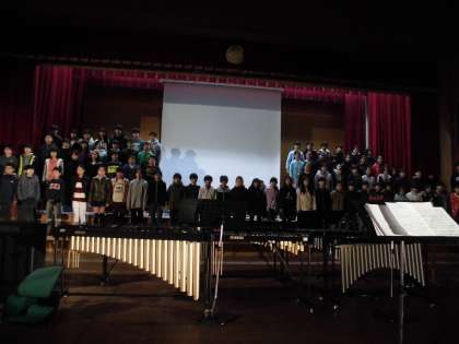 スポットライトを当て,ステージに立つと,子どもたちの表情も普段とは違う緊張した顔つきになっていました。