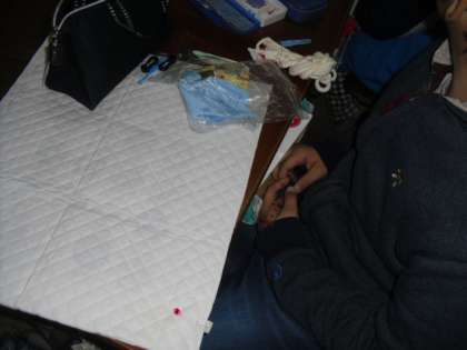 今日は「しつけ」をしました。「ミシン」を使って縫う前に,ミシン縫いをスムーズに進めるためにも大変ですがしつけをしました。来週はミシンで縫っていきます!