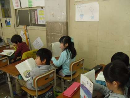 「たぬきの糸車」の学習も進み,音読の練習もしているので,一人一文ずつ読んでみました。しっかりみんなによく聞こえる声で,気持ちを込めて読めている子もいました。