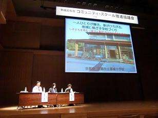 9月14日、文部科学省の主催でH22年度のコミュニティ・スクール推進協議会が、東京の代々木で行われ、藤城小学校の取組を発表してきました。運営協議会「やまざくらNET21」の会長さん・副会長さんとご一緒に川崎市や岡山市の小学校の方々を交えてのパネルディスカッションなどに参加し、他校の取組に学ぶところも多くありました。すでに5年になる、藤城の子ども達をまん中にした地域と学校の取組を、広く発信することができました。これからも、「すきです!ふじしろ、広げようふれあい!」をテーマに取り組んでまいりますので、引き続き皆さまのご協力・ご支援を、どうぞよろしくお願いいたします。