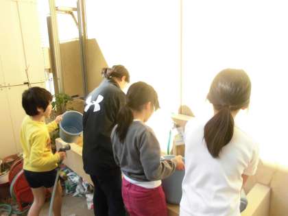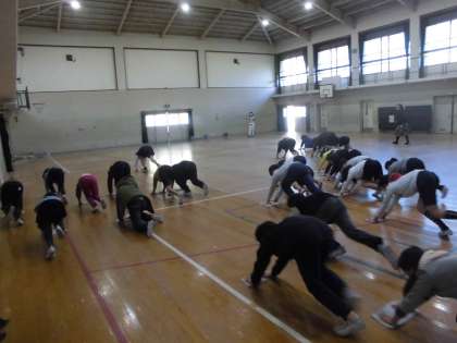 そうじ時間を使って,5年生で体育館のふきそうじをしました。「よーい,どん!」で何往復もがんばってくれました!おかげで少しきれいになりました。そして,最後の片付けまでしっかりやってくれました。高学年らしい姿が見られ嬉しい姿でした。